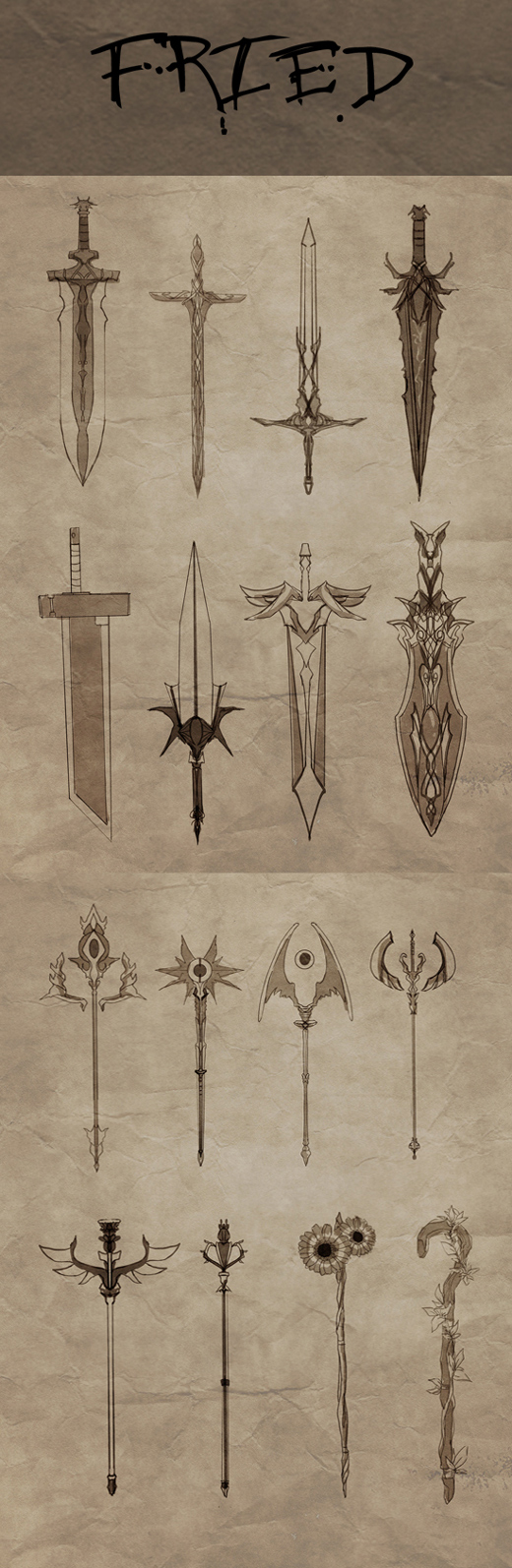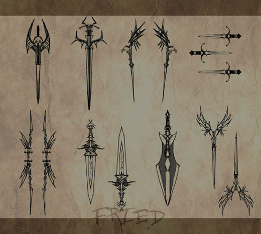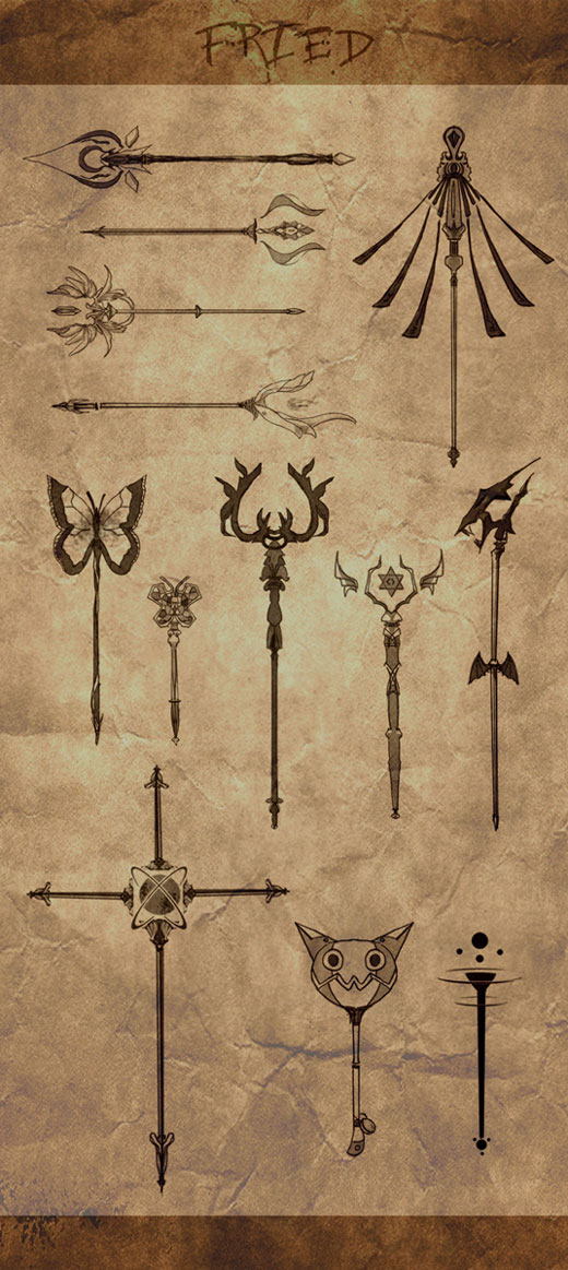 屯儿的武器全晒出来吧,还有一把特别想画的法杖没时间了……(话说我明明是个骑士为什么特别想画魔具T▽T