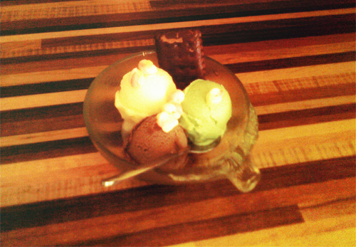 对哦那个冰淇林好棒的,本来以为是水果+一个巧克力球的结果端上是三个水果球+巧克力饼干TUT……一直都在吃各种甜食好糟糕|||||