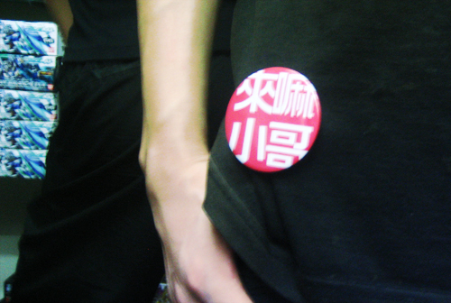 在动漫sky只买了几枚徽章,"来嘛小哥"送给崴,这么戴着好可爱啊=///=……送给大师的是"速度+1",要爆发力不要气胸!大师加油>v<