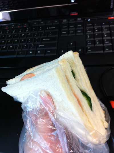 周四的时候雅岚做了三明治给大家当早餐。在她身边目睹了自制三明治的全过程,感想是:呜哇好累啊……